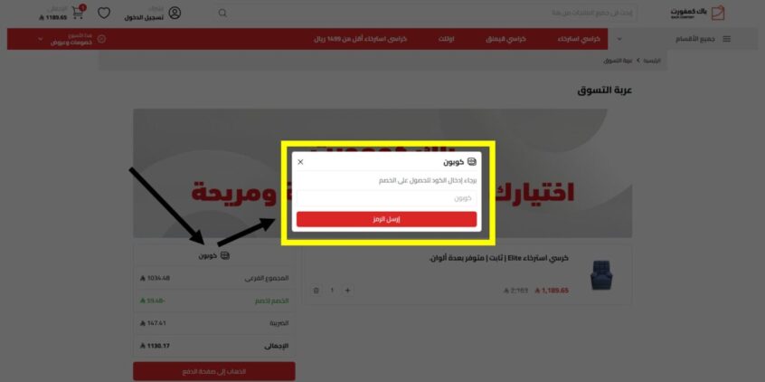 - ألصق كود خصم باك كمفورت (A18) في خانة الكوبون المخصصة له